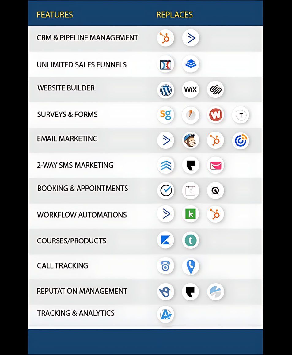 It eliminates the need for standalone email marketing platforms like Mailchimp, ConvertKit, or AWeber. It has built-in email systems that allow businesses to build and send marketing campaigns, automate email sequences, and track how well emails are doing.